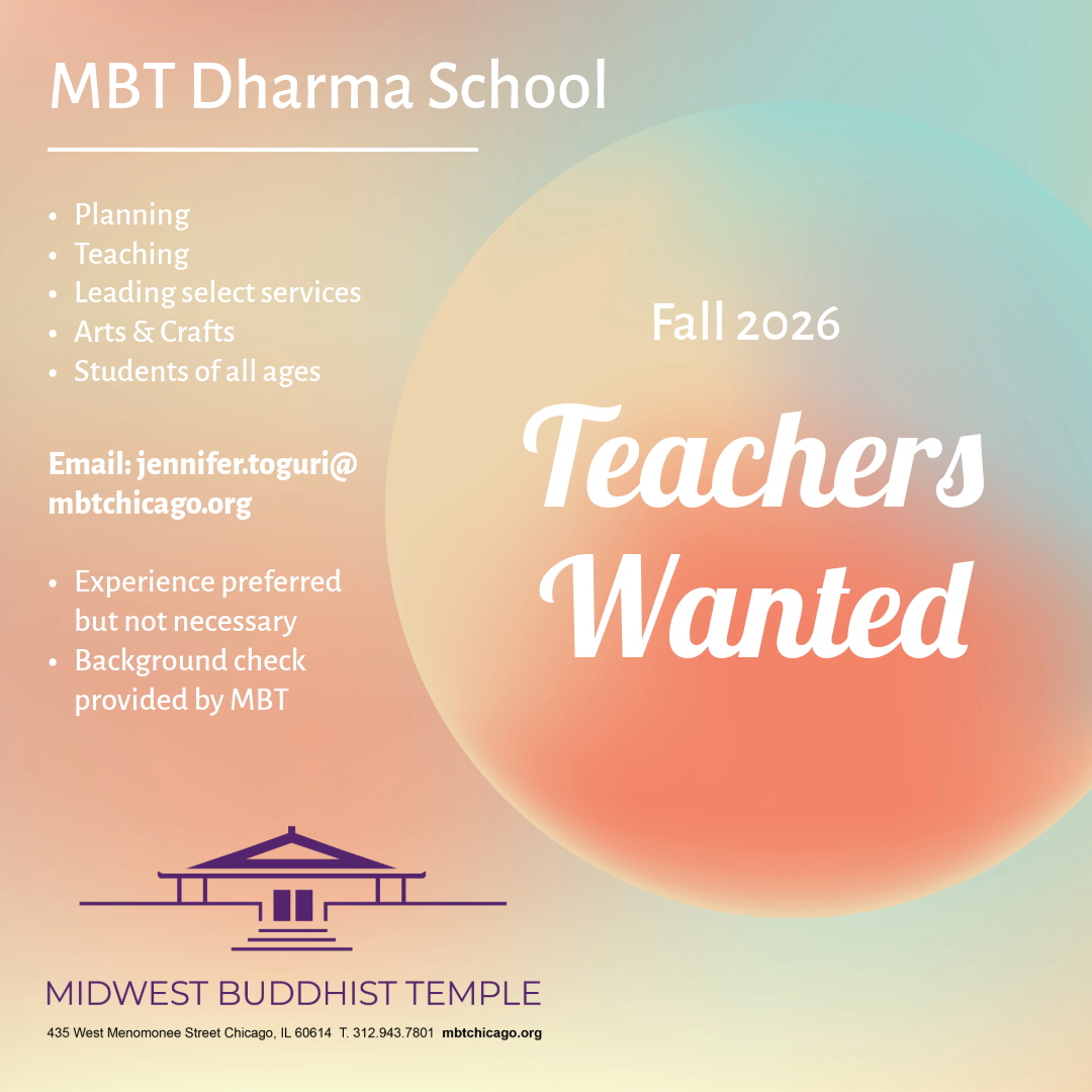 If you have any questions or would like to learn more about MBT’s Dharma School, please contact the temple office at office@mbtchicago.org or call 312.943.7801.